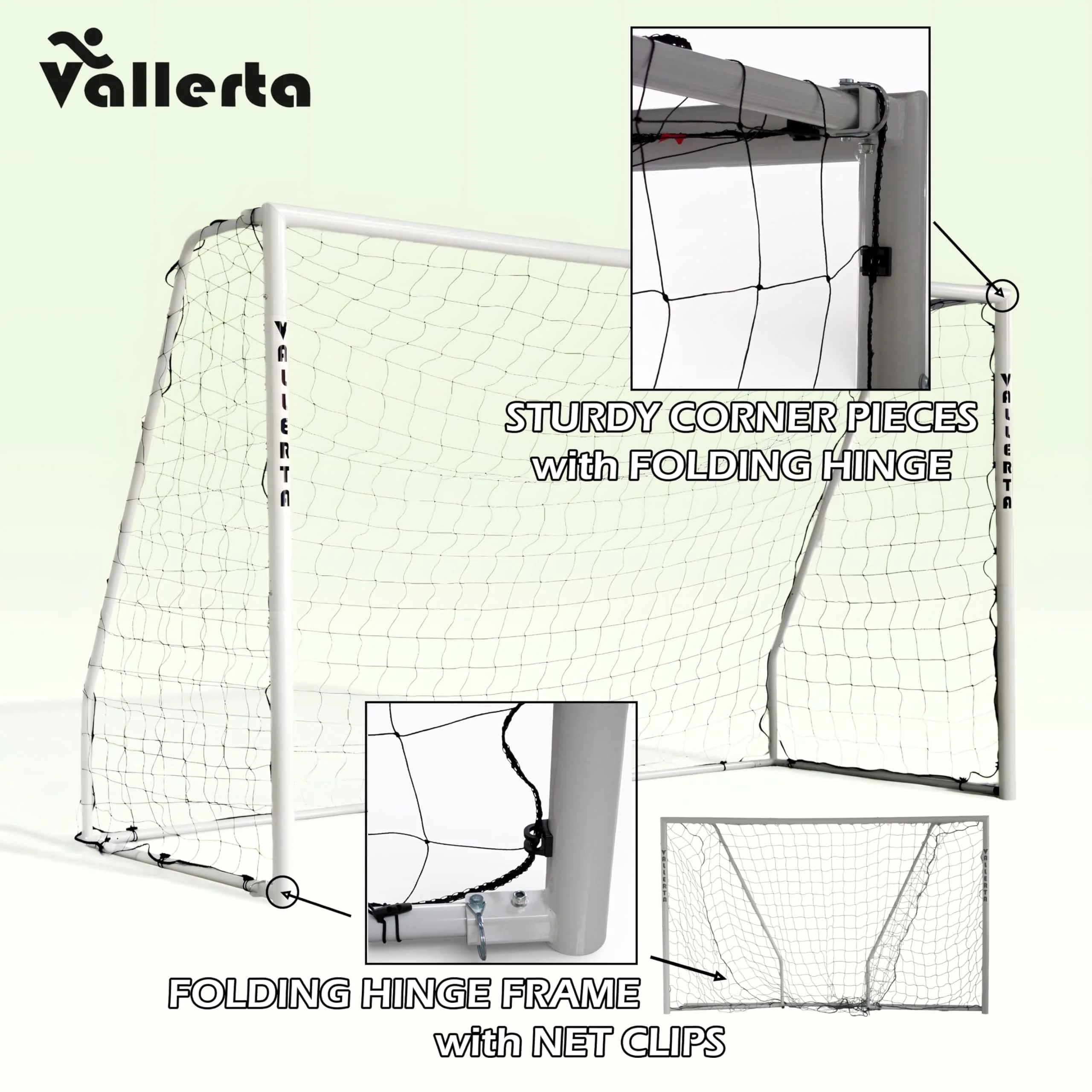 Vallerta - Folding Steel Soccer Goal, Flat Fold Frame, HDPE Quick Clip Net, All Weather